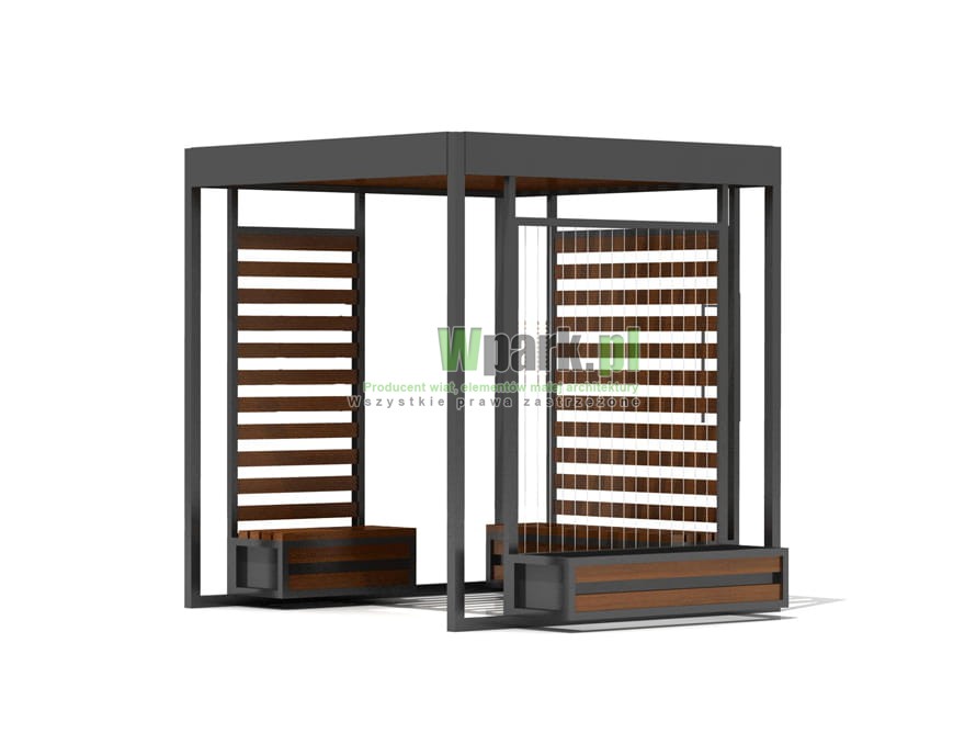 - w zestawie ściany: ściana boczna ławka drewna 900 mm, ściana boczna ławka drewno 1500 mm, ściana boczna donica z linkami 1500 mm,