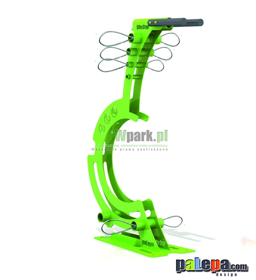 - stojak na rowery na którym można powiesić rower, włożyć rower z przodu