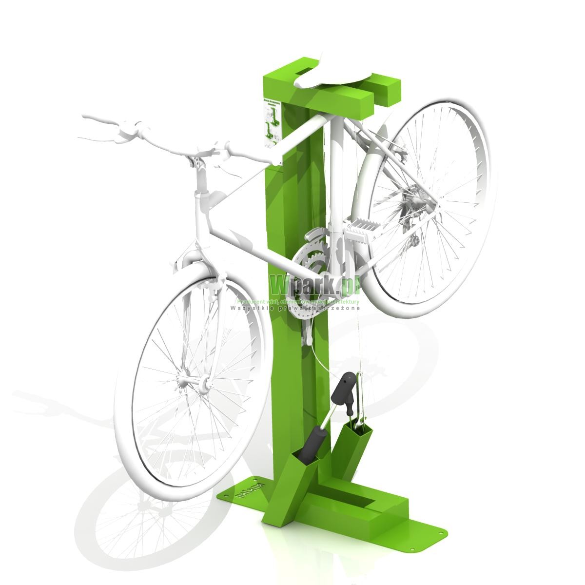 - stojak na rowery na którym można powiesić rower, włożyć rower z przodu lub z tyłu, może być siedziskiem