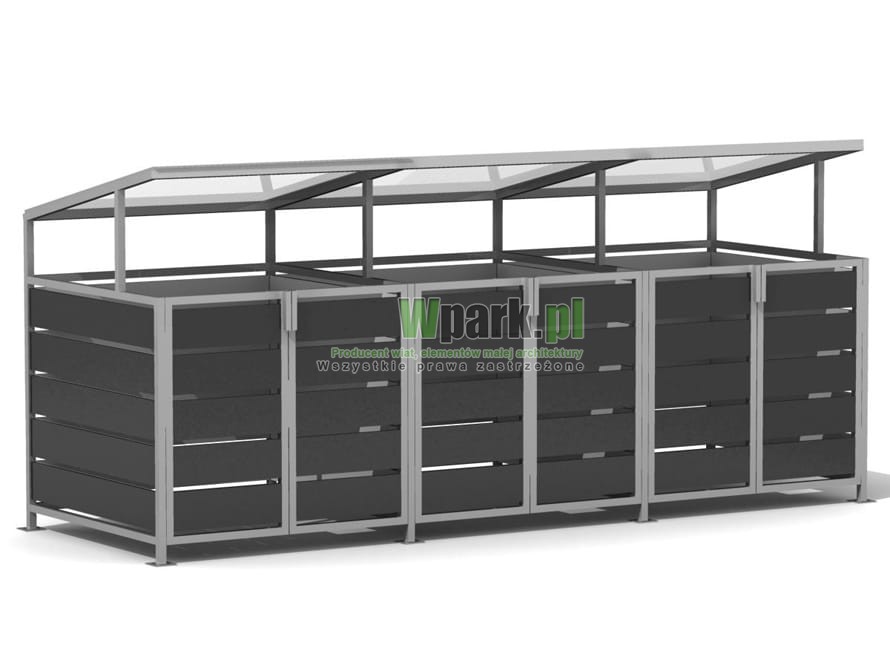 - do boksa mieszczą się trzy pojemniki 1100 L lub sześć 240 L