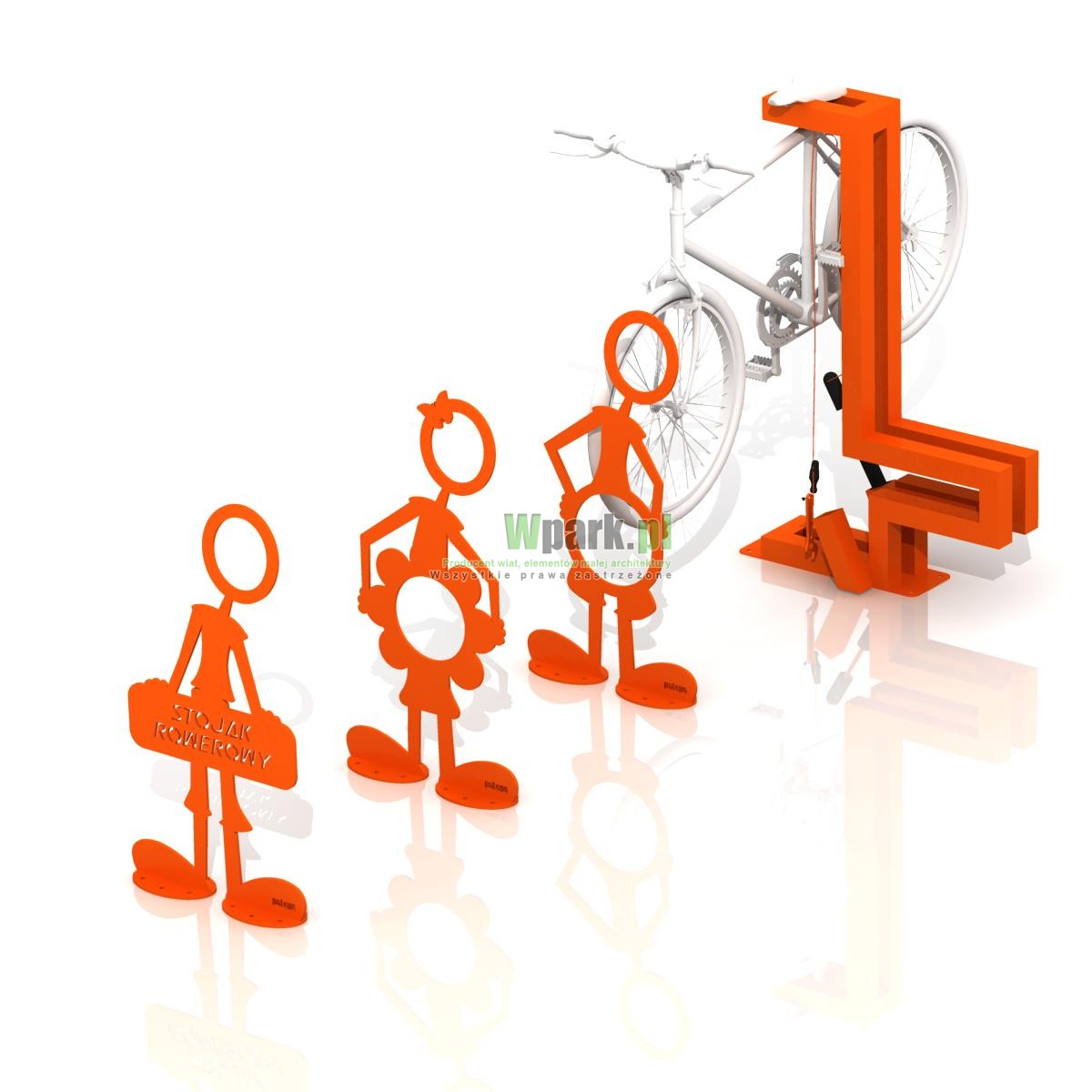 - stojak na rowery na którym można powiesić rower, włożyć rower z przodu lub z tyłu, może być siedziskiem