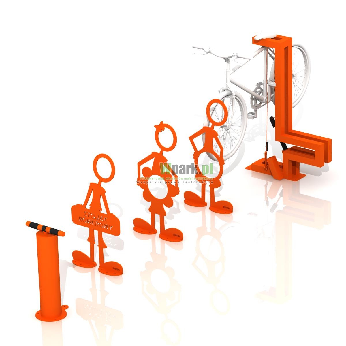łańcuchowy, 1 klucz do pedałów, 1 śrubokręt krzyżakowy, pompka.), - stojaki typ barierka szt 3, ludziki wycinane z blachy grubości 8 mm,