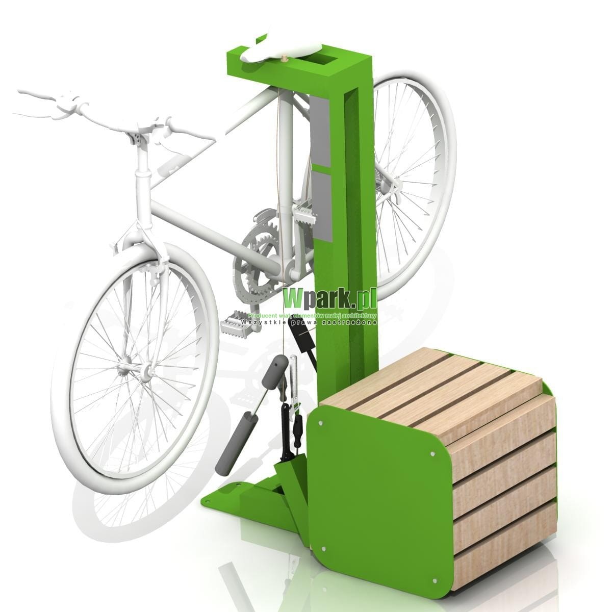 - stojak na rowery na którym można powiesić rower, może być siedziskiem
