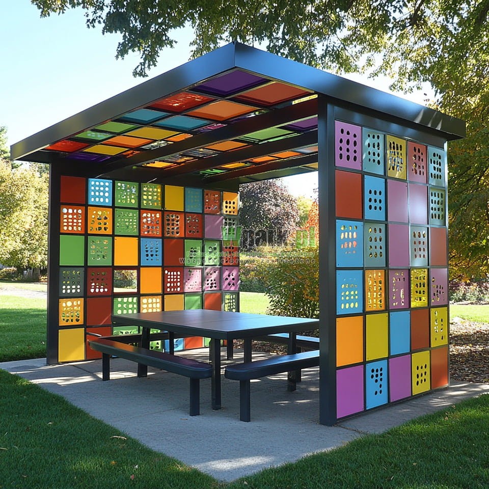 - umiejscowienie ścian można zmieniać i modyfikować dowolnie, można zamówić wiatę z jedną ścianą lub trzema, każda ściana może mieć dowolne inne wypełnienie z wyżej wymienionych,