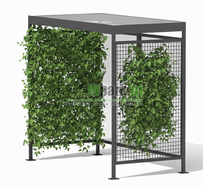 - materiał ściany: krata stalowa na rośliny dwa boki, tył poliwęglan komorowy,