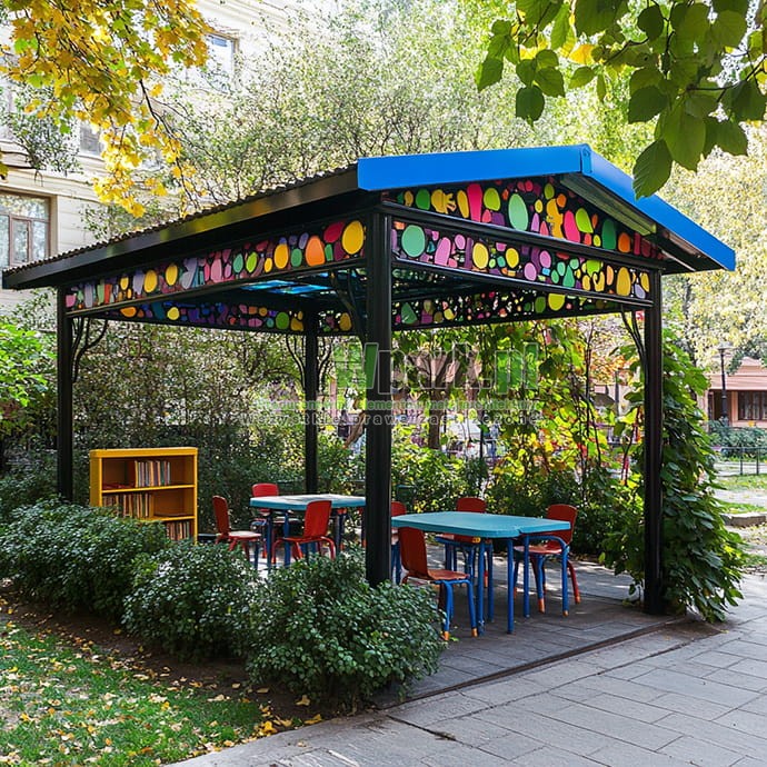 Wiata edukacyjne, altany szkolna – klasa pod chmurką 05