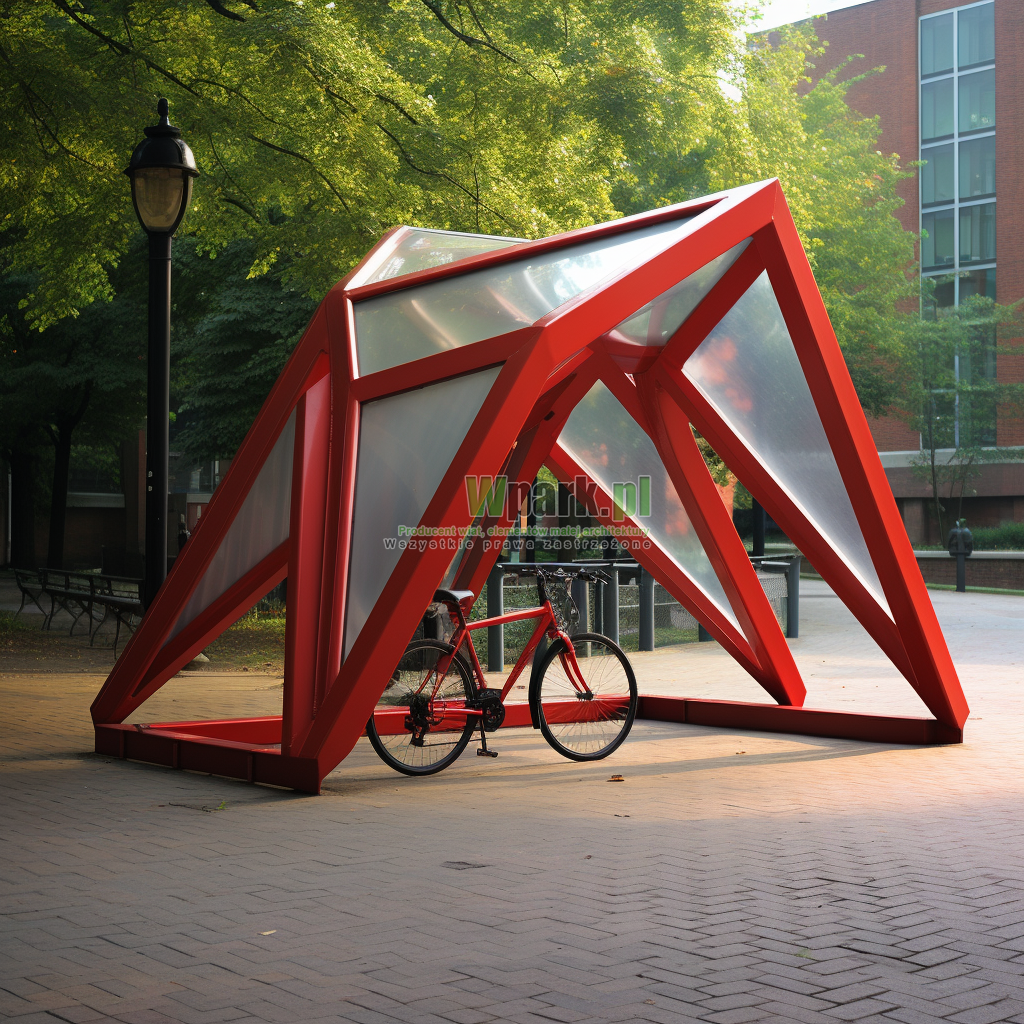 Cena wiaty zawiera wiatę z dachem i widocznymi ścianami jak na wizualizacji. Cena bez stojaków na rowery.
