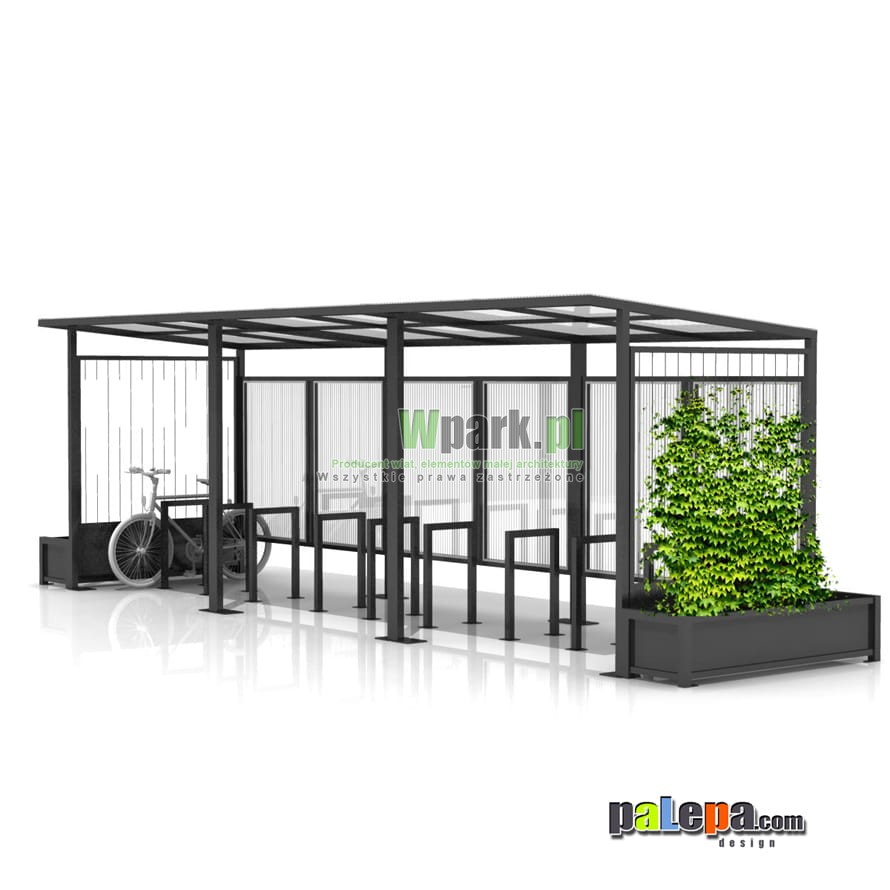 Wiata na rowery MODE 18 - na 18 rowerów z donicami