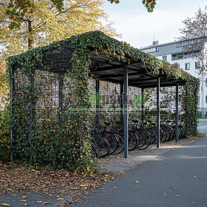 - wypełnienie ścian bocznych i tyłu: siatka stalowa cynkowana ogniowo - po siatce mogą się wspinać rośliny